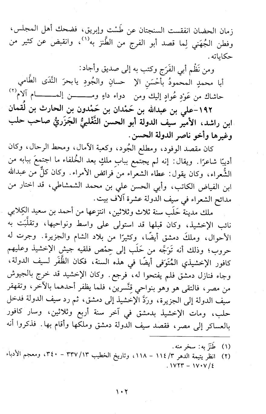 192 - علي بن عبد الله بن حمدان بن حمدون بن الحارث بن لقمان بن راشد، الأمير سيف الدولة أبو الحسن التغلبي الجْزري [المتوفى: 356 هـ]