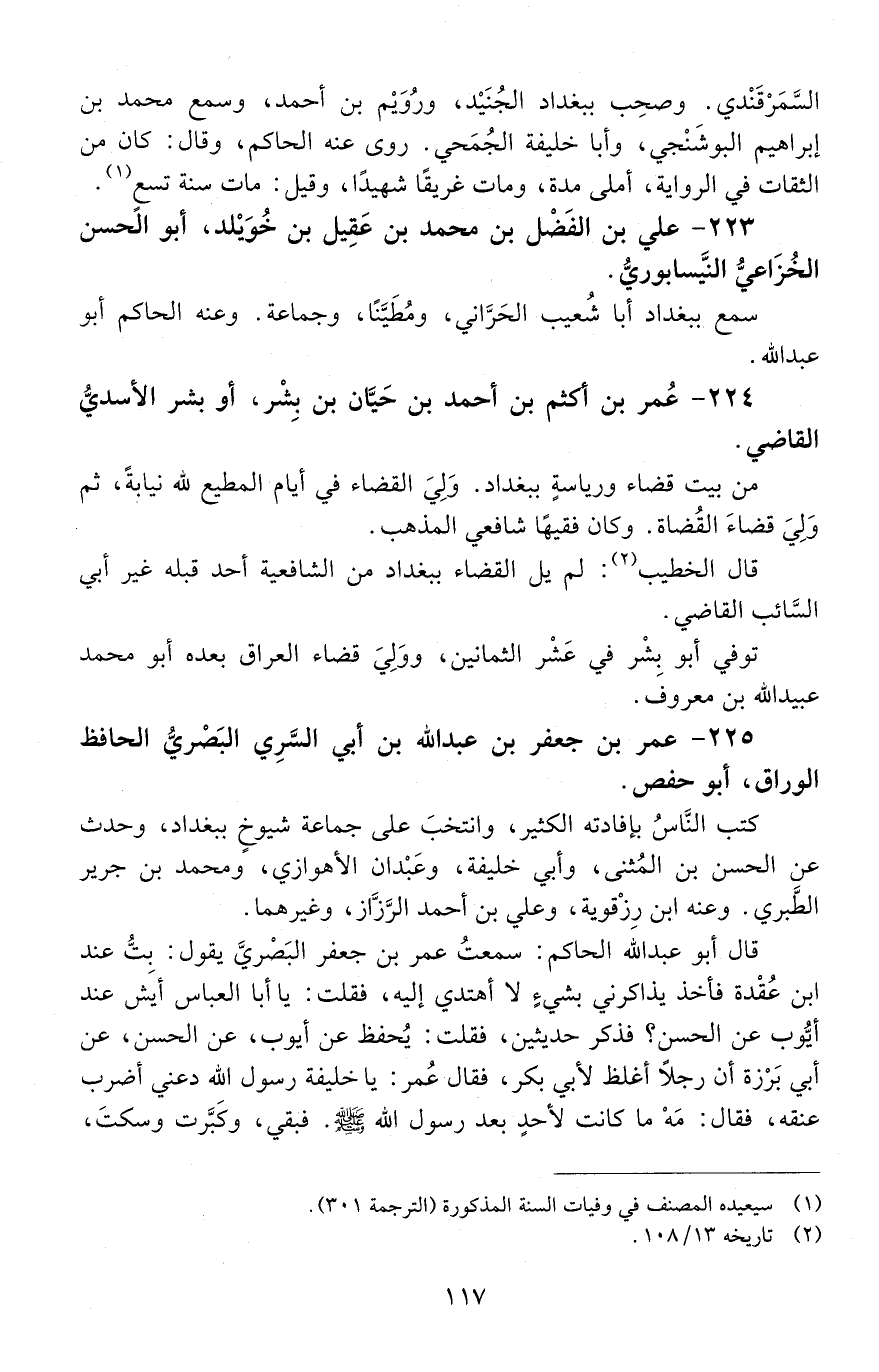 225 - عمر بن جعفر بن عبد الله بن أبي السَّرِيّ البصْرِي الحافظ الورّاق، أبو حفص. [المتوفى: 357 هـ]