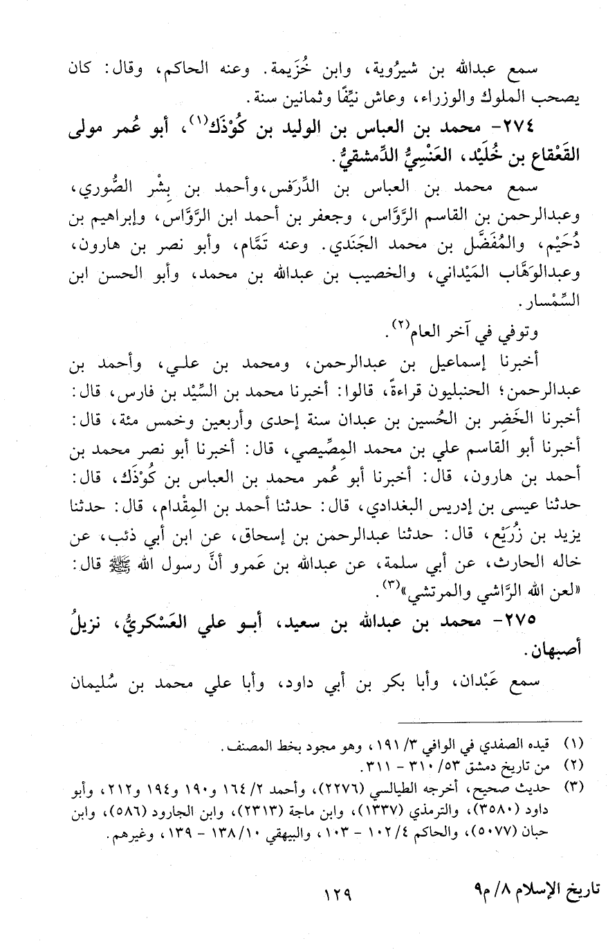 274 - محمد بن العباس بن الوليد بن كُوذَك، أبو عمر مولى القعقاع بن خُلَيّد، العنسي الدمشقي. [المتوفى: 358 هـ]
