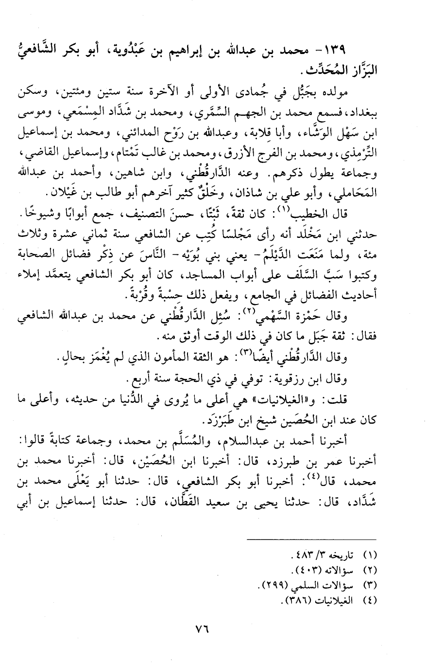 139 - محمد بن عبد الله بن إبراهيم بن عَبْدُوَيْه، أبو بكر الشافعي البزّاز المحدّث. [المتوفى: 354 هـ]