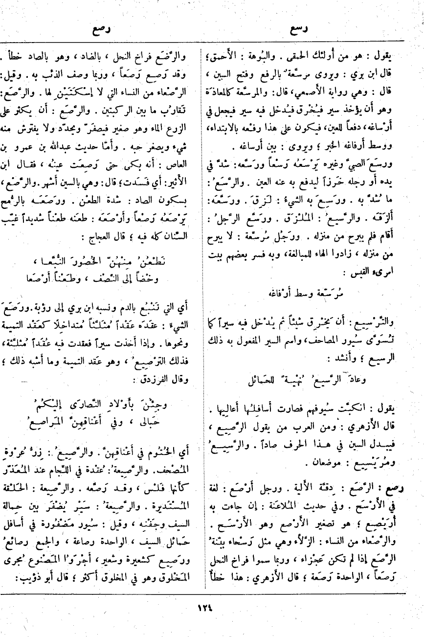 أَي الَّتِي تَنْبُع بِالدَّمِ وَنَسَبَهُ ابْنُ بَرِّيٍّ إِلى رُؤْبَةَ. ورَصَعَ الشيءَ: عقَدَه عَقْداً مُثَلَّثاً مُتداخِلًا كعَقْد التَّمِيمَةِ وَنَحْوِهَا. وإِذا أَخذت سَيْرًا فَعَقَدْتَ فِيهِ عُقَداً مُثلَّثة، فَذَلِكَ الترْصِيعُ، وَهُوَ عَقد التَّمِيمَةِ وَمَا أَشبه ذَلِكَ؛ وَقَالَ الْفَرَزْدَقُ: