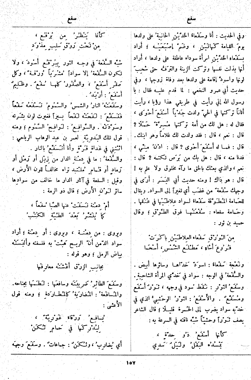 شبَّه السُّفْعةَ فِي وَجْهِ الثَّوْرِ بِبُرْقُع أَسْودَ، وَلَا تَكُونُ السُّفْعةُ إِلا سَوَادًا مُشْرَباً وُرْقةً، وَكُلُّ صَقْرٍ أَسْفَعُ، والصُّقُورُ كُلُّهَا سُفْعٌ. وظَلِيمٌ أَسْفَعُ: أَرْبَدُ. وسَفَعَتْهُ النارُ والشمسُ والسَّمُومُ تَسْفَعُه سَفْعاً فَتَسَفَّعَ: لَفَحَتْه لَفْحاً يَسِيرًا فَغَيَّرَتْ لَوْنَ بشَرته وسَوَّدَتْه. والسَّوافِعُ: لَوافِحُ السَّمُوم؛ وَمِنْهُ قَوْلُ تِلْكَ البَدوِيّةِ لِعُمَرَ بْنِ عَبْدِ الْوَهَّابِ الرِّيَاحِيِّ: ائْتِني فِي غداةٍ قَرَّةٍ وأَنا أَتَسَفَّعُ بِالنَّارِ. والسُّفْعةُ: مَا فِي دِمْنةِ الدَّارِ مِنْ زِبْل أَو رَمْل أَو رَمادٍ أَو قُمامٍ مُلْتبد تَرَاهُ مُخَالِفًا لِلَوْنِ الأَرض، وَقِيلَ: السَّفْعَةُ فِي آثَارِ الدَّارِ مَا خَالَفَ مِنْ سوادِها سَائِرَ لَوْنِ الأَرض؛ قَالَ ذُو الرُّمَّةِ: