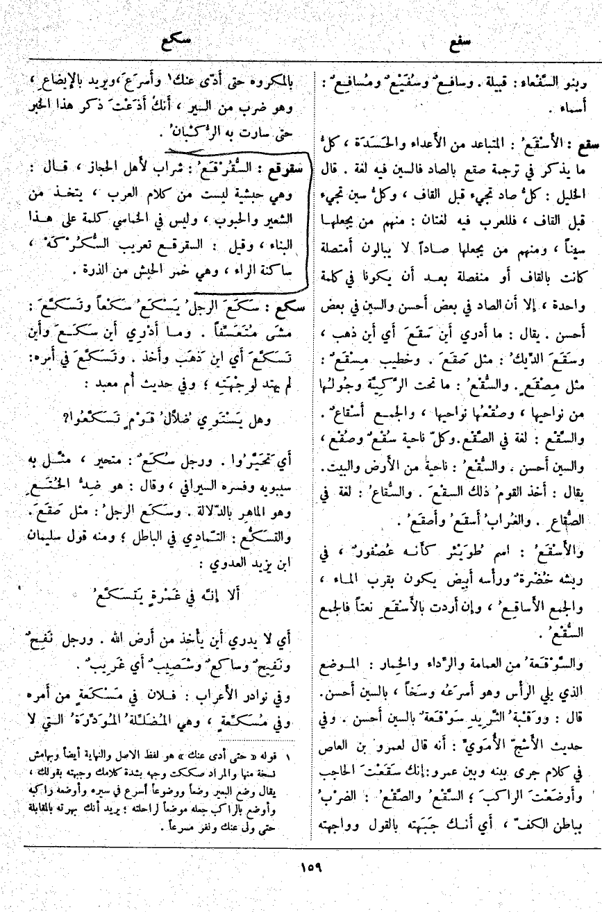 سقع: الأَسْقَعُ: الْمُتَبَاعِدُ مِنَ الأَعداء والحَسَدَة، كلُّ مَا يُذْكَرُ فِي تَرْجَمَةِ صَقَعَ بِالصَّادِّ فَالسِّينُ فِيهِ لُغَةٌ. قَالَ الْخَلِيلُ: كلُّ صَادٍ تَجِيءُ قَبْلَ الْقَافِ، وكلُّ سِينٍ تَجِيءُ قَبْلَ الْقَافِ، فَلِلْعَرَبِ فِيهِ لُغَتَانِ: مِنْهُمْ مَنْ يَجْعَلُهَا سِينًا، وَمِنْهُمْ مَنْ يَجْعَلُهَا صَادًا لَا يُبَالُونَ أَمتصلة كَانَتْ بِالْقَافِ أَو مُنْفَصِلَةً بَعْدَ أَن يَكُونَا فِي كَلِمَةٍ وَاحِدَةٍ، إِلا أَن الصَّادَ فِي بَعْضٍ أَحسن وَالسِّينَ فِي بَعْضٍ أَحسن. يُقَالُ: مَا أَدري أَين سَقَعَ أَي أَين ذَهَبَ، وسَقَعَ الدِّيكُ: مِثْلُ صَقَعَ. وَخَطِيبٌ مِسْقَعٌ: مِثْلُ مِصْقَعٍ. والسُّقْعُ: مَا تَحْتَ الرَّكِيَّة وجُولُها مِنْ نَوَاحِيهَا، وصُقْعُها نَوَاحِيهَا، وَالْجَمْعُ أَسْقاعٌ. والسَّقْعُ: لُغَةٌ فِي الصَّقْع. وَكُلُّ نَاحِيَةٍ سُقْعٌ وصُقْع، وَالسِّينُ أَحسن. والسُّقْعُ: نَاحِيَةٌ مِنَ الأَرض وَالْبَيْتِ. يُقَالُ: أَخذ القومُ ذَلِكَ السُّقْعَ. والسُّقاعُ: لُغَةٌ فِي الصُّقاعِ. والغُرابُ أَسقَعُ وأَصقَعُ. والأَسْقَعُ: اسْمُ طُوَيْئر كأَنه عُصْفورٌ، فِي رِيشِهِ خُضْرةٌ ورأْسه أَبيض يَكُونُ بِقُرْبِ الْمَاءِ، وَالْجَمْعُ الأَساقِعُ، وإِن أَردت بالأَسْقَعِ نَعْتًا فَالْجَمْعُ السُّقْعُ. والسَّوْقَعةُ مِنَ الْعِمَامَةِ والرِّداء والخِمار: الْمَوْضِعُ الَّذِي يَلِي الرأْس وَهُوَ أَسرَعُه وسَخاً، بِالسِّينِ أَحسن. قَالَ: ووَقْبةُ الثَّرِيدِ سَوْقَعةٌ بِالسِّينِ أَحسن. وَفِي حَدِيثِ