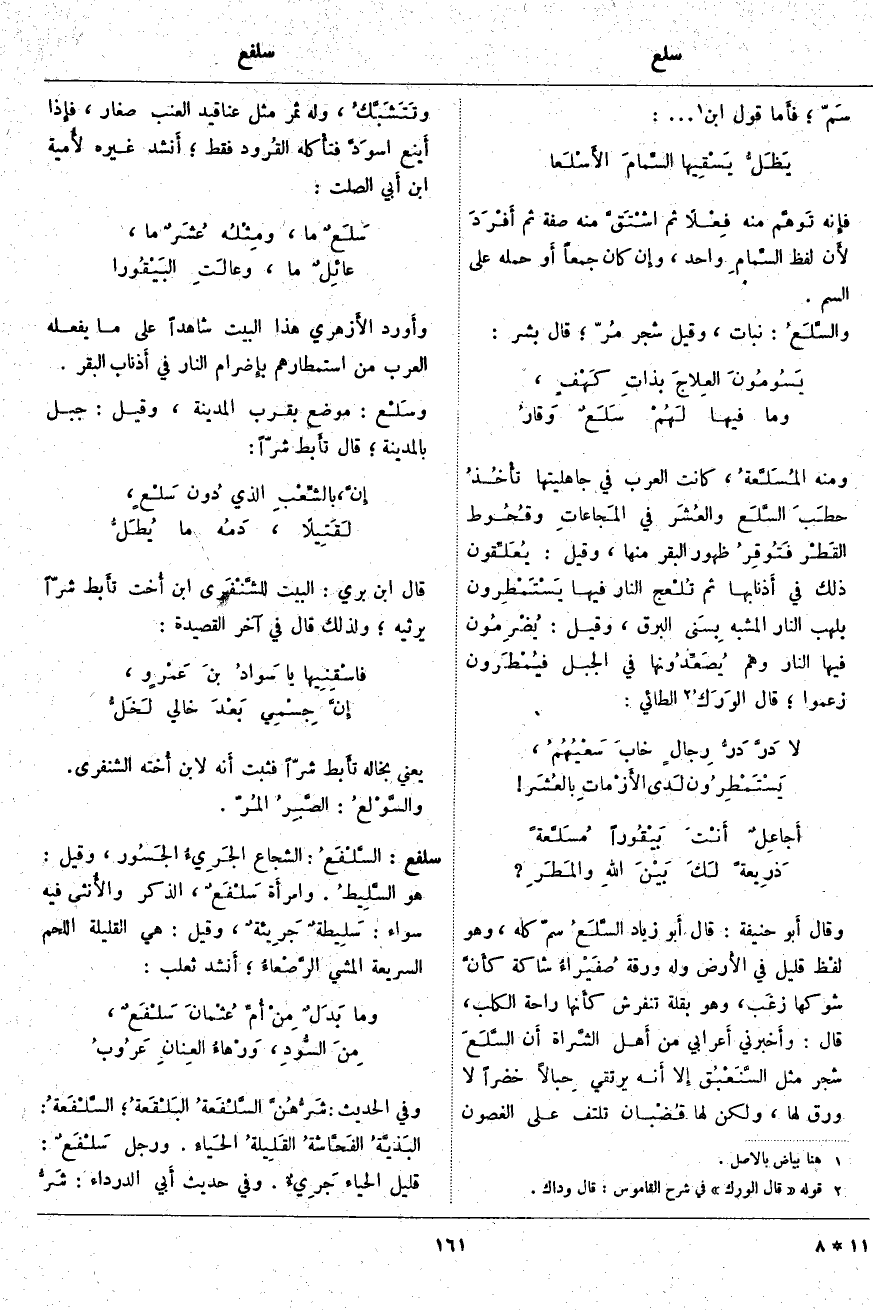 فإِنه تَوهَّم مِنْهُ فِعْلًا ثُمَّ اشْتَقَّ مِنْهُ صِفَةً ثُمَّ أَفْرَدَ لأَن لَفْظَ السِّمام وَاحِدٌ، وإِن كَانَ جَمْعًا أَو حَمَلَهُ عَلَى السَّمِّ. والسَّلَعُ: نَبَاتٌ، وَقِيلَ شَجَرٌ مُرّ؛ قَالَ بِشْرٌ: