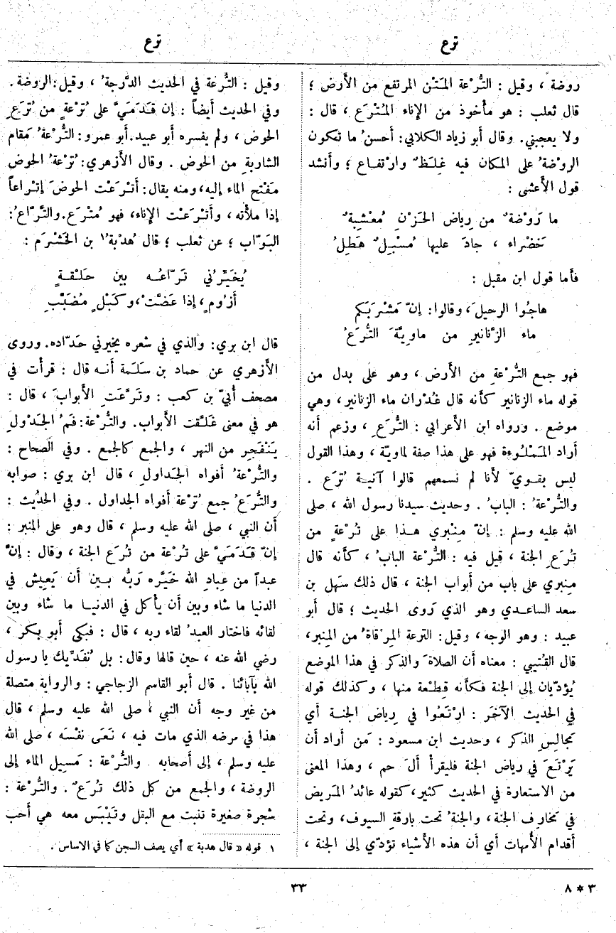 قَالَ أَبو الْقَاسِمِ الزَّجَّاجِيُّ: وَالرِّوَايَةُ مُتَّصِلَةٌ مِنْ غَيْرِ وَجْهِ أَن النَّبِيَّ، صَلَّى اللَّهُ عَلَيْهِ وَسَلَّمَ، قَالَ هَذَا فِي مَرَضِهِ الَّذِي مَاتَ فِيهِ، نَعَى نفْسَه، صَلَّى اللَّهُ عَلَيْهِ وَسَلَّمَ، إِلى أَصحابه. والتُّرْعة: مَسِيل الْمَاءِ إِلى الرَّوْضَةِ، وَالْجَمْعُ مِنْ كُلِّ ذَلِكَ تُرَعٌ. والتُّرْعة: شَجَرَةٌ صَغِيرَةٌ تَنْبُتُ مَعَ الْبَقْلِ وتَيْبَس مَعَهُ هِيَ أَحب
