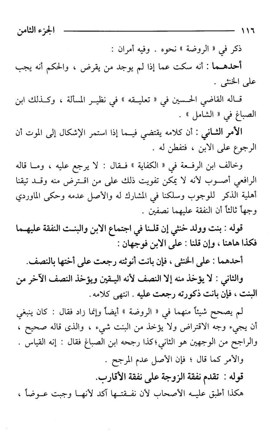 قوله: بنت وولد خنثي إن قلنا في اجتماع الابن والبنت النفقة عليهما فكذا هاهنا، وإن قلنا: على الابن فوجهان: