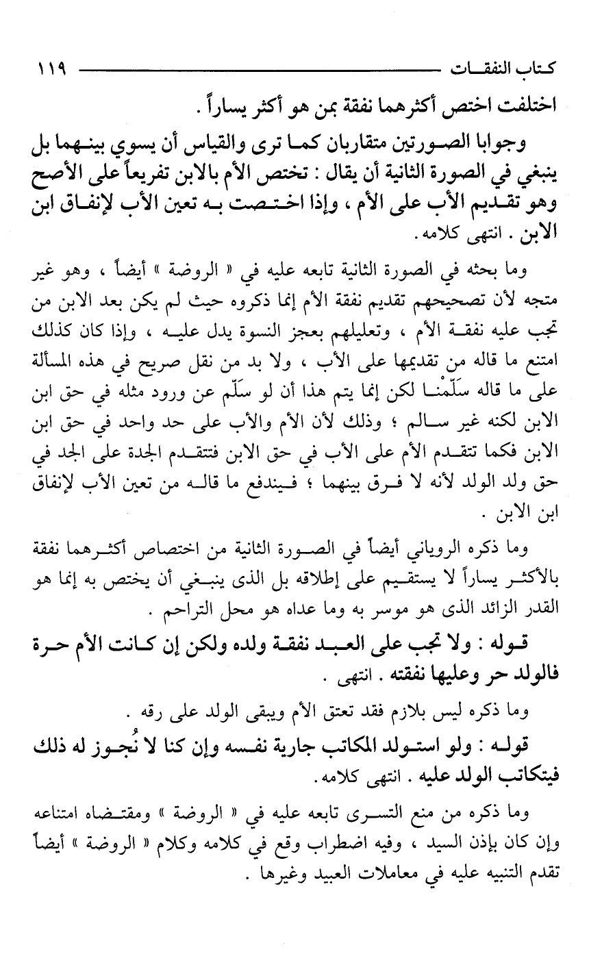 وما ذكره الروياني أيضًا في الصورة الثانية من اختصاص أكثرهما نفقة بالأكثر يسارًا لا يستقيم على إطلاقه بل الذى ينبغي أن يختص به إنما هو القدر الزائد الذى هو موسر به وما عداه هو محل التراحم.