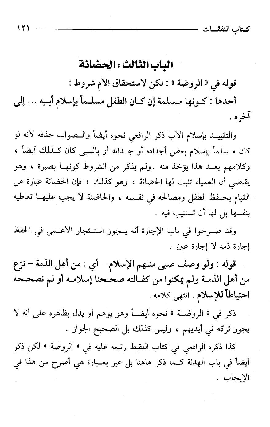 أحدها: كونها مسلمة إن كان الطفل مسلمًا بإسلام أبيه. . . . إلى آخره.