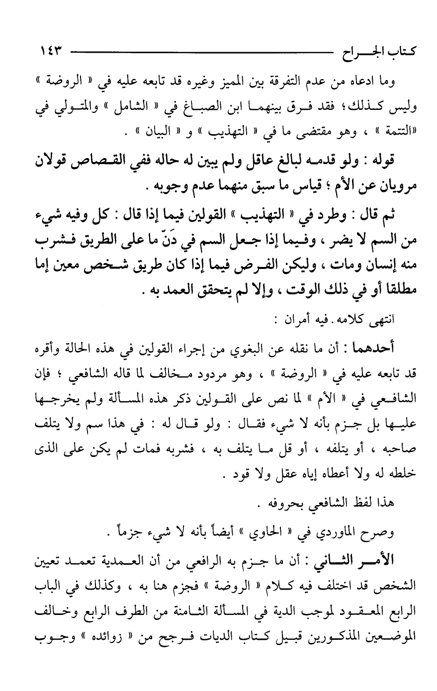 الأمر الثاني: أن ما جزم به الرافعي من أن العمدية تعمد تعيين الشخص قد اختلف فيه كلام "الروضة" فجزم هنا به، وكذلك في الباب الرابع المعقود لموجب الدية في المسألة الثامنة من الطرف الرابع وخالف الموضعين المذكورين قبيل كتاب الديات فرجح من "زوائده" وجوب