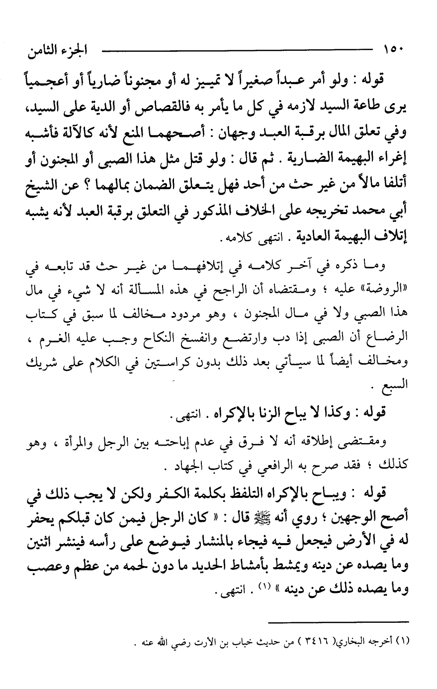 قوله: ويباح بالإكراه التلفظ بكلمة الكفر ولكن لا يجب ذلك في أصح الوجهين؛ روي أنه - صَلَّى اللَّهُ عَلَيْهِ وَسَلَّمَ - قال: "كان الرجل فيمن كان قبلكم يحفر له في الأرض فيجعل فيه فيجاء بالمنشار فيوضع على رأسه فينشر اثنين وما يصده عن دينه ويمشط بأمشاط الحديد ما دون لحمه من عظم وعصب وما يصده ذلك عن دينه" (¬1). انتهى.