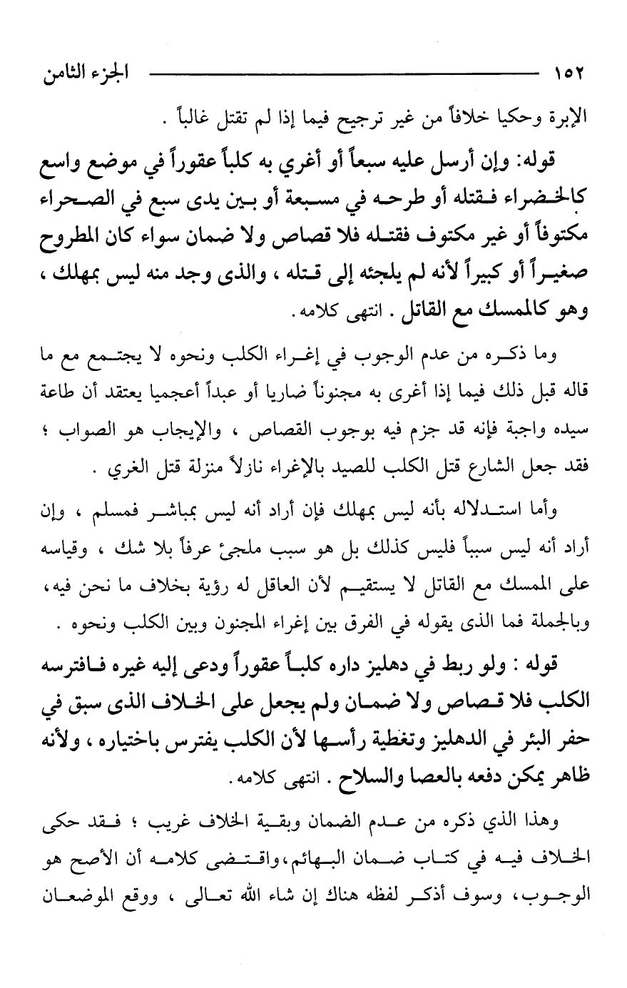 وأما استدلاله بأنه ليس بمهلك فإن أراد أنه ليس بمباشر فمسلم، وإن أراد أنه ليس سببًا فليس كذلك بل هو سبب ملجئ عرفًا بلا شك، وقياسه على الممسك مع القاتل لا يستقيم لأن العاقل له رؤية بخلاف ما نحن فيه، وبالجملة فما الذى يقوله في الفرق بين إغراء المجنون وبين الكلب ونحوه.