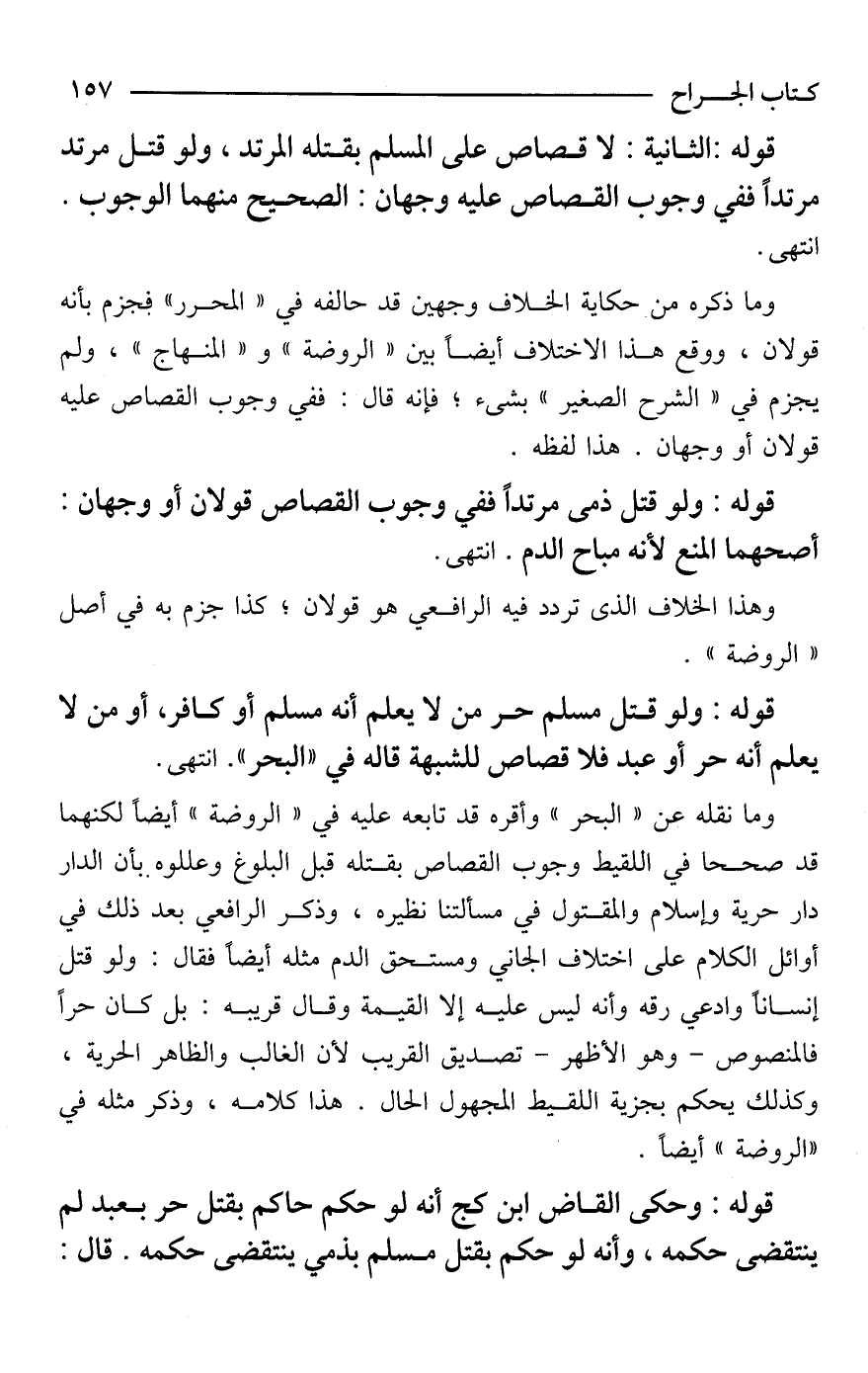 قوله: الثانية: لا قصاص على المسلم بقتله المرتد، ولو قتل مرتد مرتدًا ففي وجوب القصاص عليه وجهان: الصحيح منهما الوجوب. انتهى.