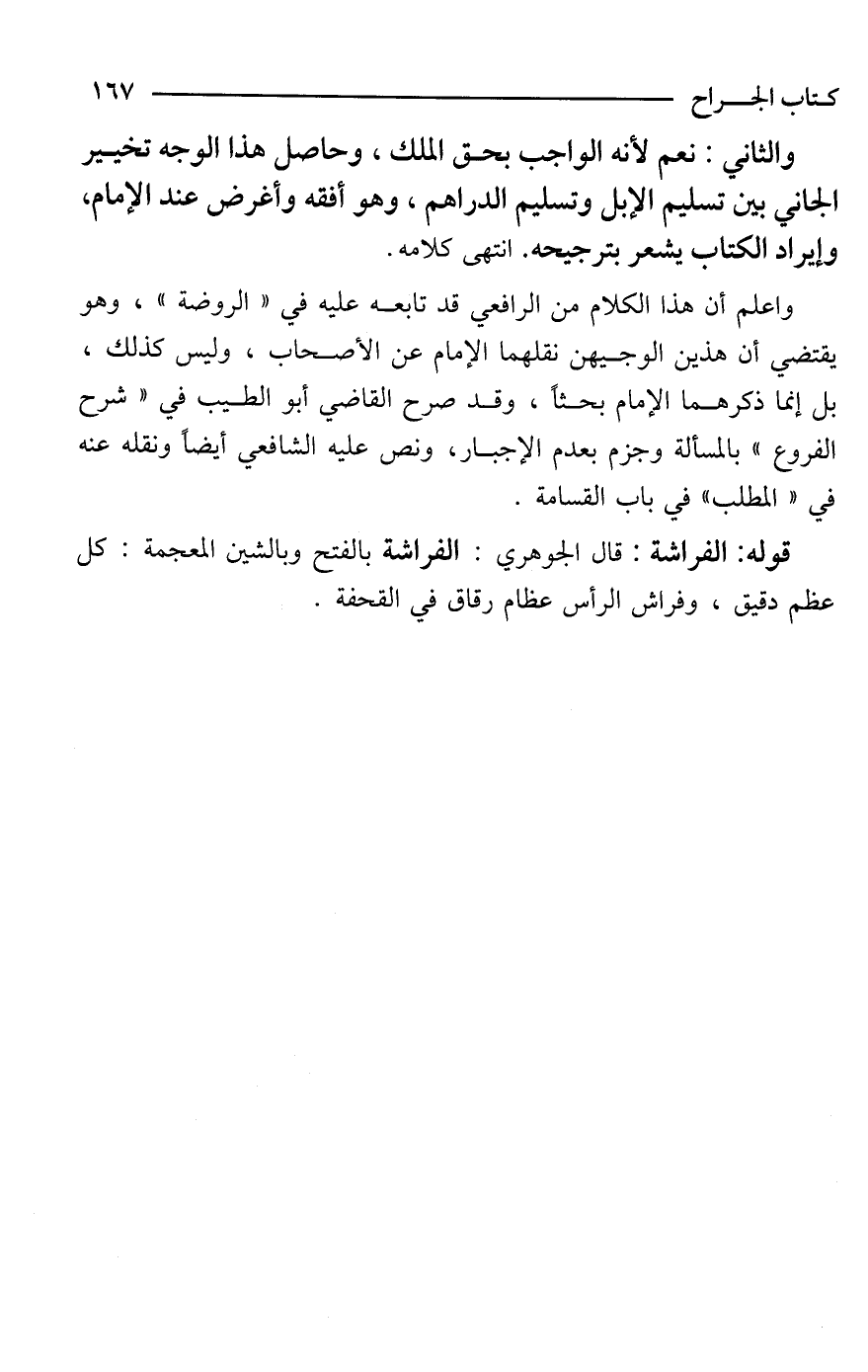 والثاني: نعم لأنه الواجب بحق الملك، وحاصل هذا الوجه تخيير الجاني بين تسليم الإبل وتسليم الدراهم، وهو أفقه وأغرض عند الإمام، وإيراد الكتاب يشعر بترجيحه. انتهى كلامه.