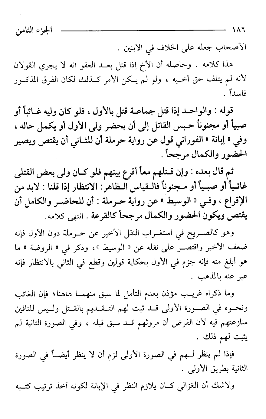 ولاشك أن الغزالي كان يلازم النظر في الإبانة لكونه أخذ ترتيب كتبه