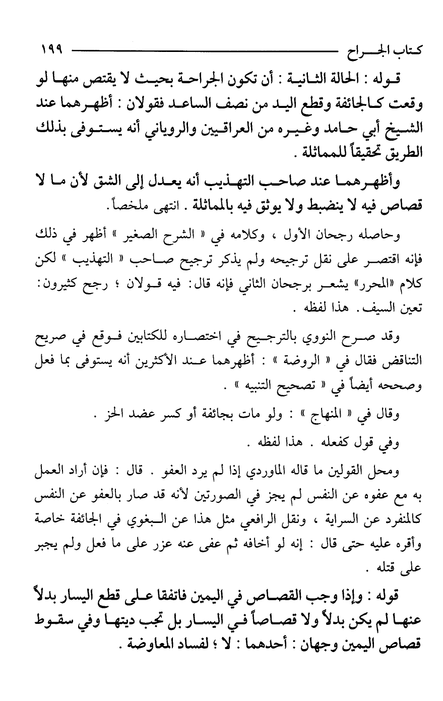 قوله: الحالة الثانية: أن تكون الجراحة بحيث لا يقتص منها لو وقعت كالجائفة وقطع اليد من نصف الساعد فقولان: أظهرهما عند الشيخ أبي حامد وغيره من العراقيين والروياني أنه يستوفى بذلك الطريق تحقيقًا للمماثلة.
