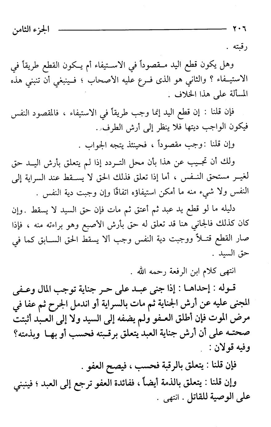 ولك أن تجيب عن هذا بأن محل التردد إذا لم يتعلق بأرش اليد حق لغير مستحق النفس، أما إذا تعلق فذلك الحق لا يسقط عند السراية إلى النفس ولا شيء منه ما أمكن استيفاؤه اتفاقًا وإن وجبت دية النفس.