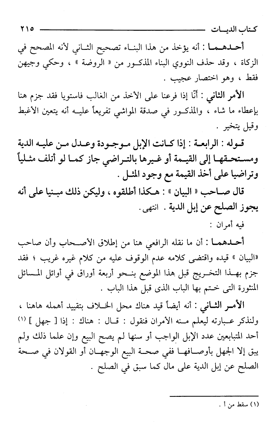 قال صاحب "البيان": هكذا أطلقوه، وليكن ذلك مبنيا على أنه يجوز الصلح عن إبل الدية. انتهى.
