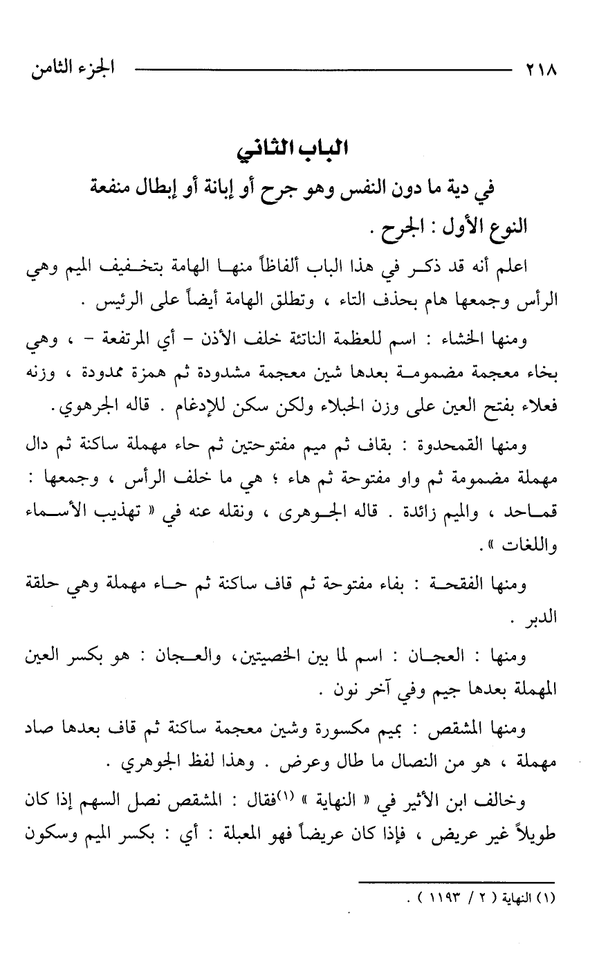 الباب الثاني في دية ما دون النفس وهو جرح أو إبانة أو إبطال منفعة