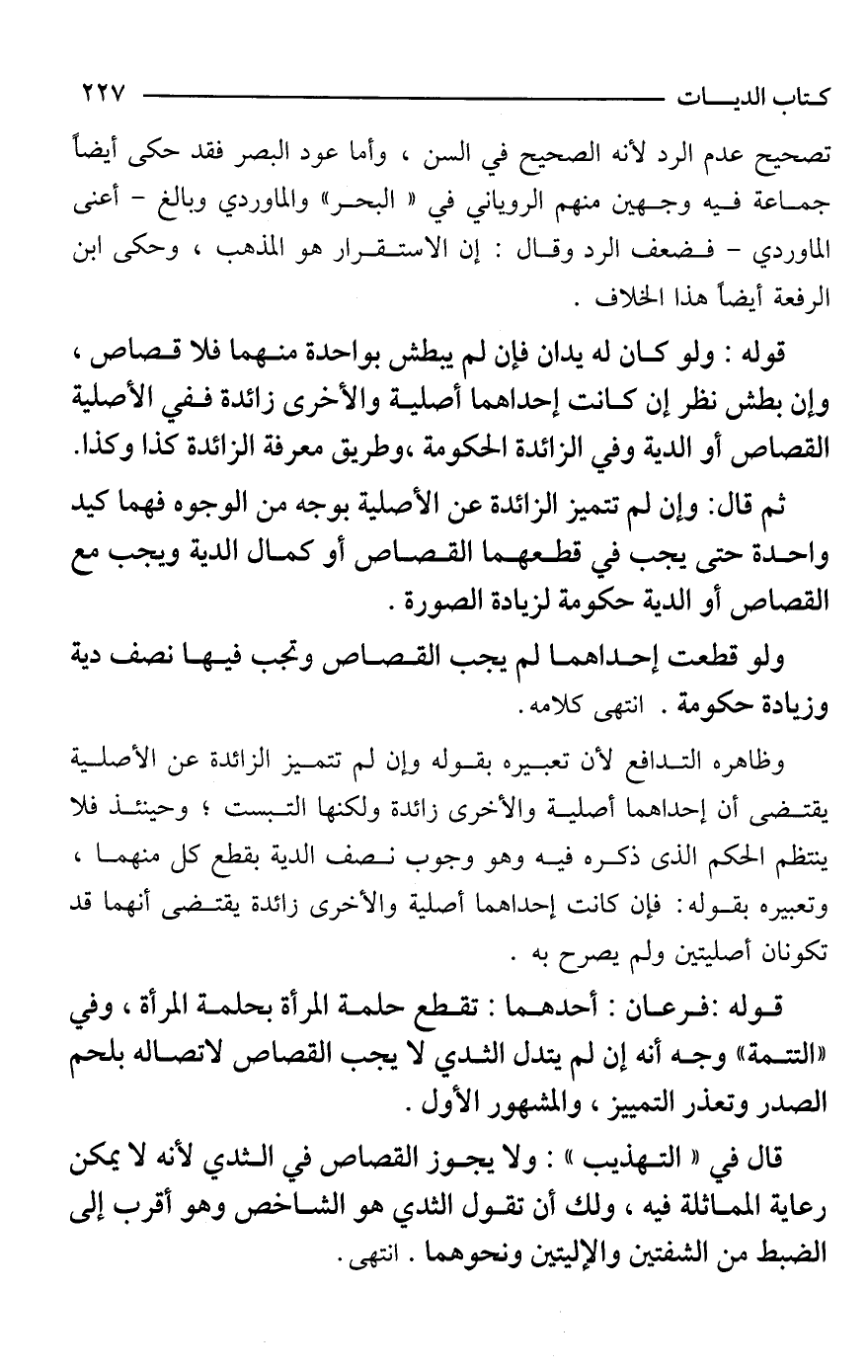 وظاهره التدافع لأن تعبيره بقوله وإن لم تتميز الزائدة عن الأصلية يقتضى أن إحداهما أصلية والأخرى زائدة ولكنها التبست؛ وحينئذ فلا ينتظم الحكم الذى ذكره فيه وهو وجوب نصف الدية بقطع كل منهما، وتعبيره بقوله: فإن كانت إحداهما أصلية والأخرى زائدة يقتضى أنهما قد تكونان أصليتين ولم يصرح به.