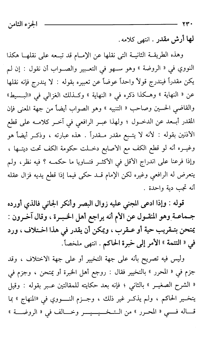قوله: وإذا ادعى المجني عليه زوال البصر وأنكر الجاني فالذي أورده جماعة وهو المنقول عن الأم أنه يراجع أهل الخبرة، وقال آخرون: يمتحن بتقريب حية أو عقرب، ويمكن أن يقدر في هذا اختلاف، ورد في "التتمة" الأمر إلى خبرة الحاكم. انتهي ملخصًا.