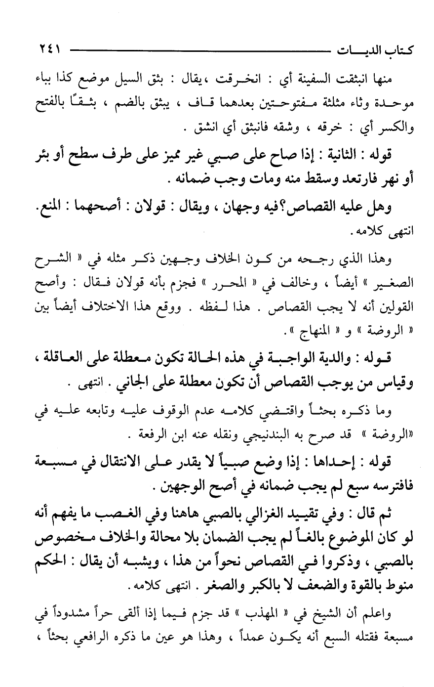 وهل عليه القصاص؟ فيه وجهان، ويقال: قولان: أصحهما: المنع. انتهى كلامه.