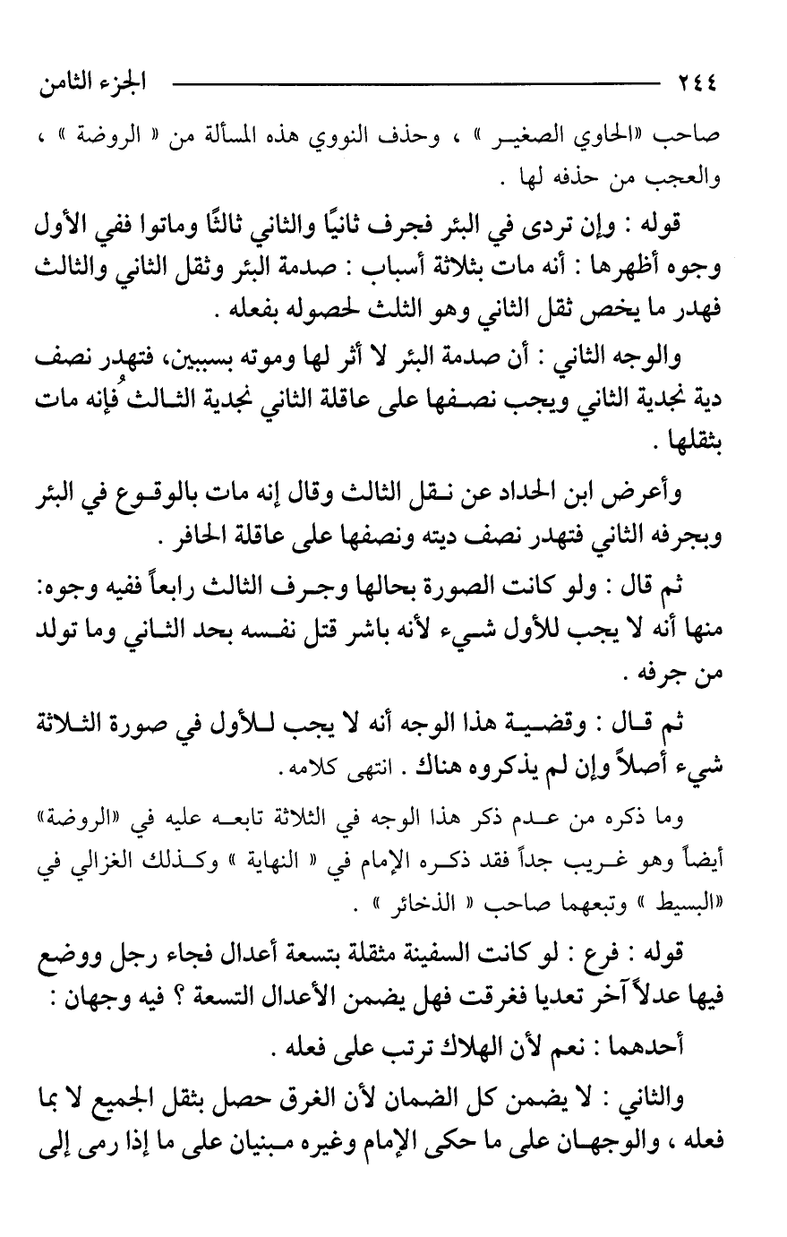 قوله: فرع: لو كانت السفينة مثقلة بتسعة أعدال فجاء رجل ووضع فيها عدلًا آخر تعديا فغرقت فهل يضمن الأعدال التسعة؟ فيه وجهان: