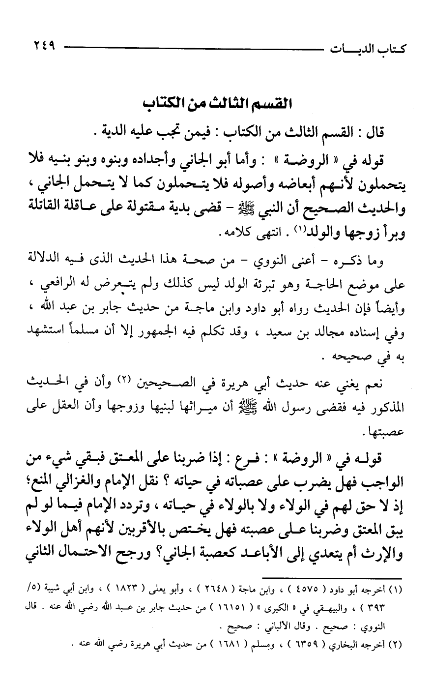 قال: القسم الثالث من الكتاب: فيمن تجب عليه الدية.