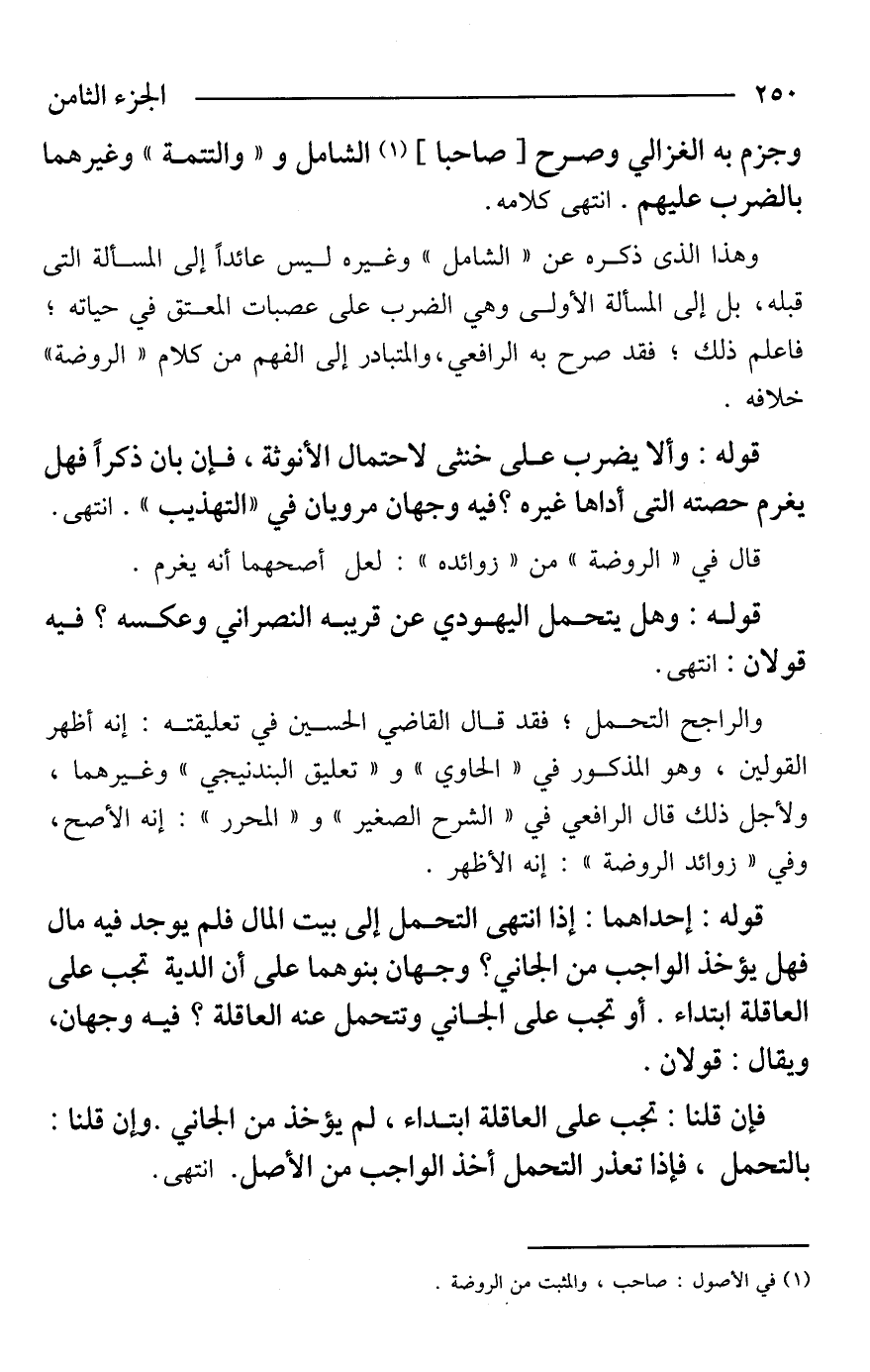 وهذا الذى ذكره عن "الشامل" وغيره ليس عائدًا إلى المسألة التى قبله، بل إلى المسألة الأولى وهي الضرب على عصبات المعتق في حياته؛ فاعلم ذلك؛ فقد صرح به الرافعي، والمتبادر إلى الفهم من كلام "الروضة" خلافه.