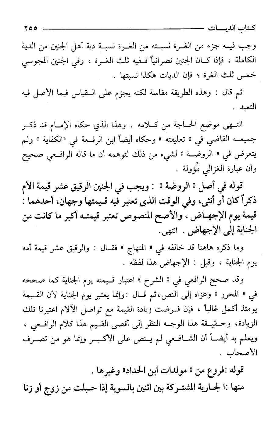 قوله في أصل "الروضة": ويجب في الجنين الرقيق عشر قيمة الأم ذكرًا كان أو أنثى، وفي الوقت الذى تعتبر فيه قيمتها وجهان، أحدهما: قيمة يوم الإجهاض، والأصح المنصوص تعتبر قيمته أكبر ما كانت من الجناية إلى الإجهاض. انتهى.