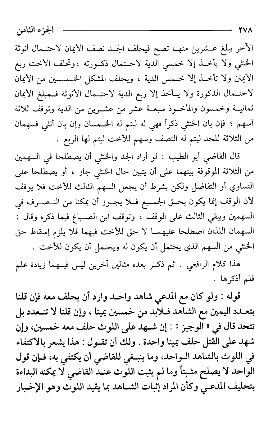 هذا كلام الرافعي. ثم ذكر بعده مثالين آخرين ليس فيهما زيادة علم فلم أذكرها.