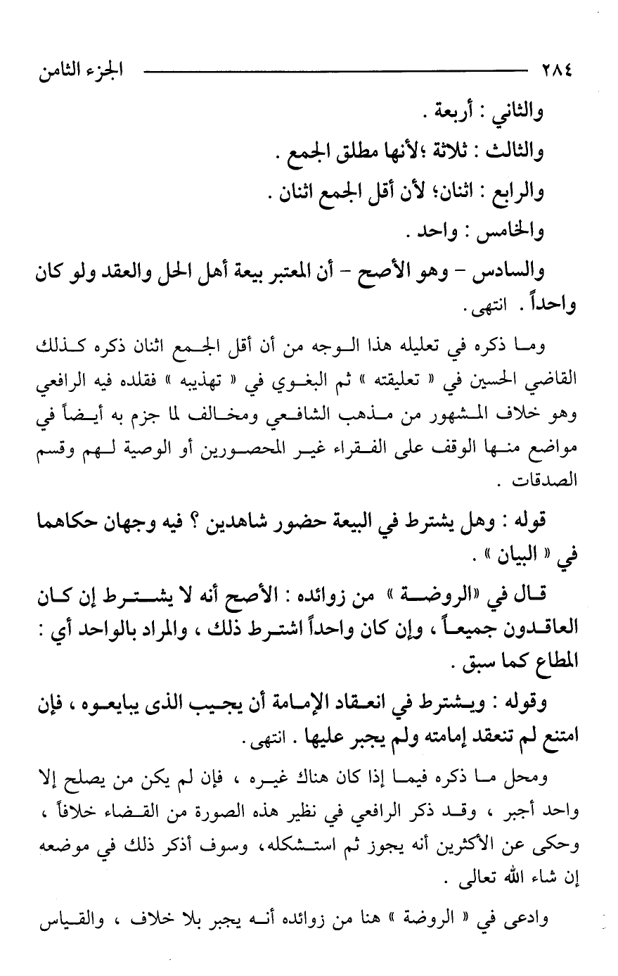 والسادس -وهو الأصح- أن المعتبر بيعة أهل الحل والعقد ولو كان واحدًا. انتهى.