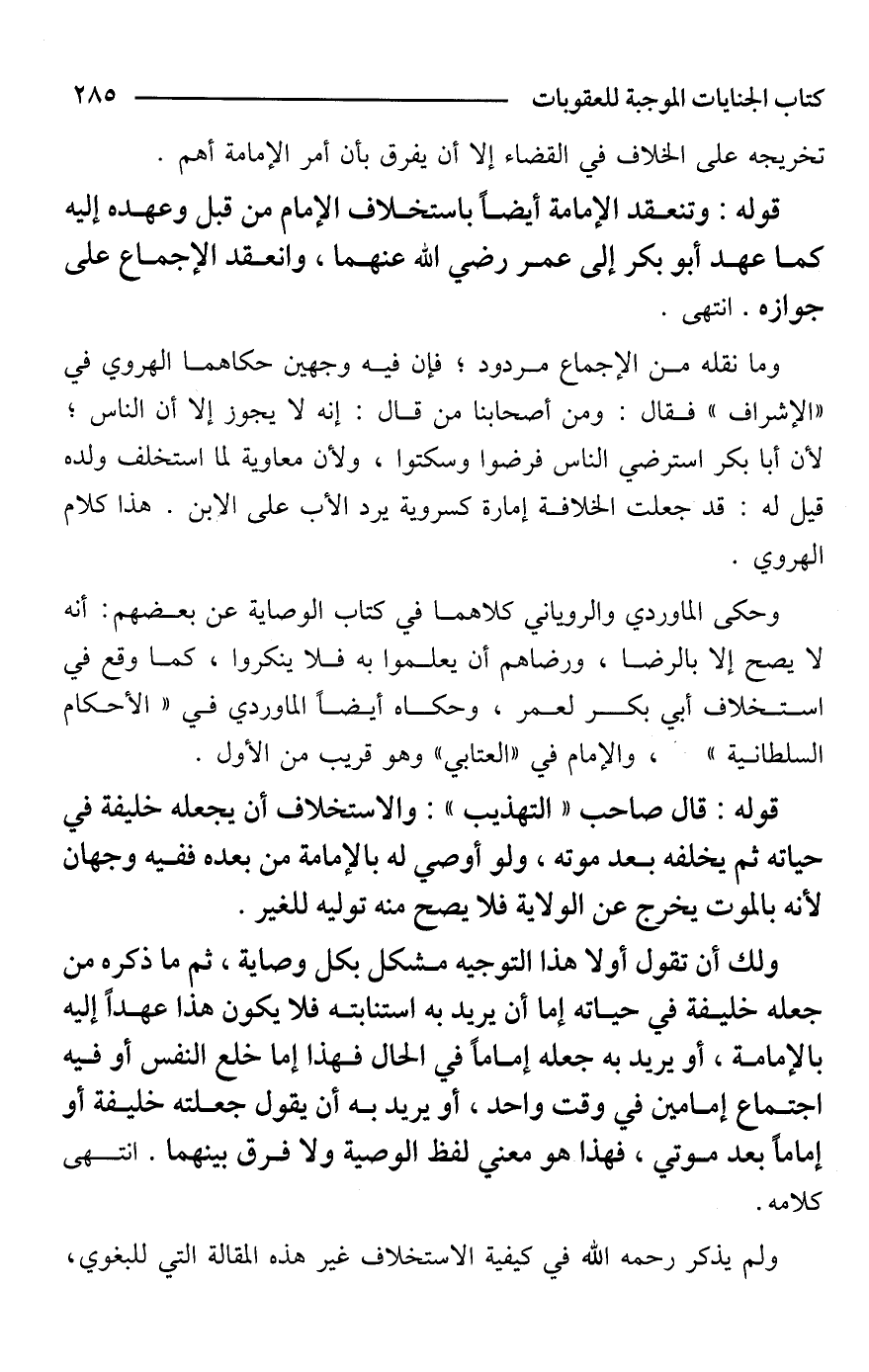 ولم يذكر -رحمه الله- في كيفية الاستخلاف غير هذه المقالة التي للبغوي،
