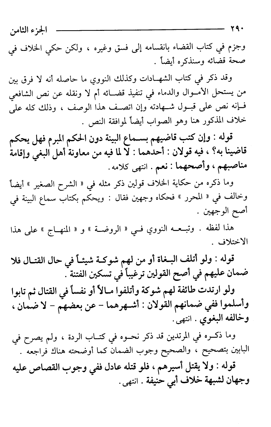 وما ذكره في المرتدين قد ذكر نحوه في كتاب الردة، ولم يصرح في البابين بتصحيح، والصحيح وجوب الضمان كما أوضحته هناك فراجعه.