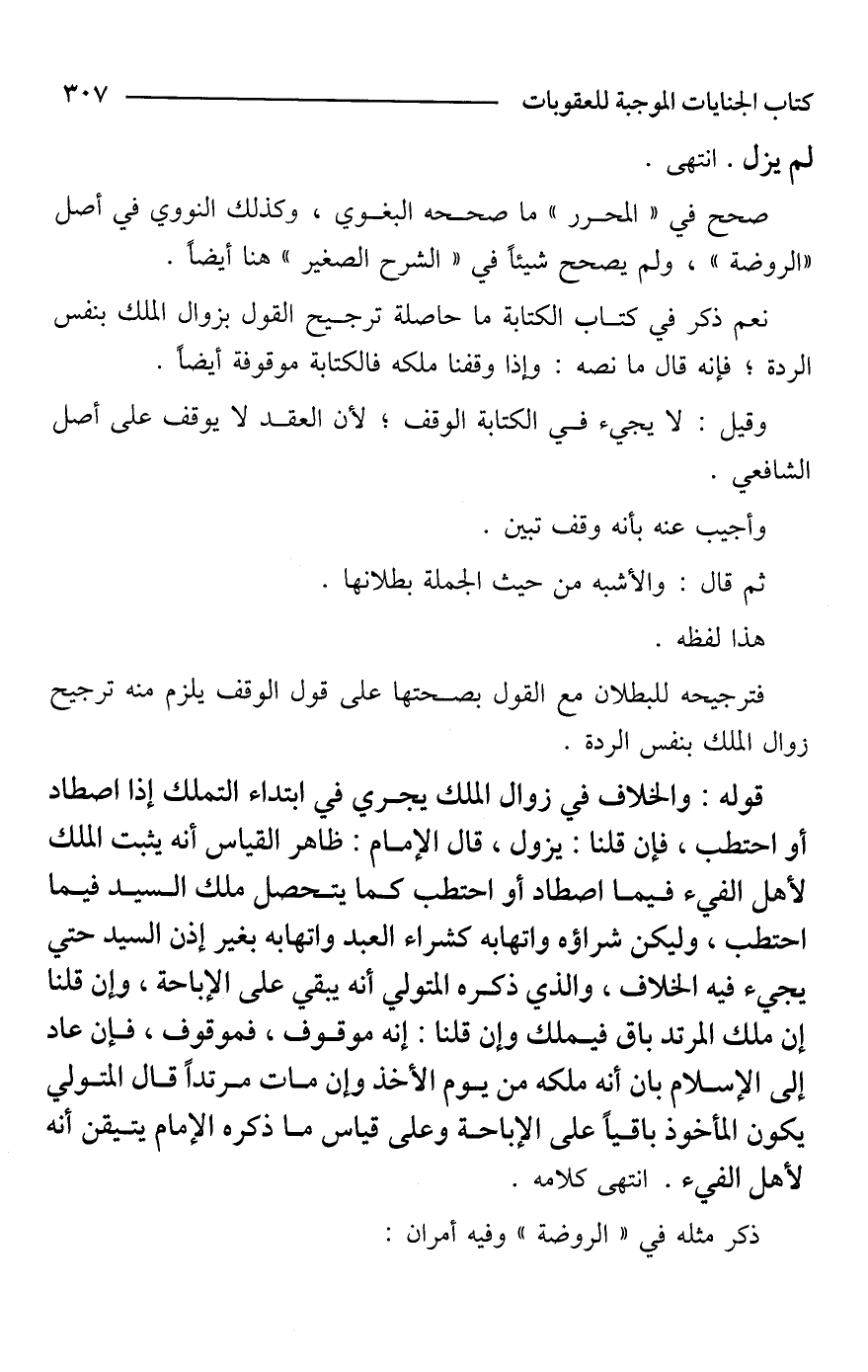 نعم ذكر في كتاب الكتابة ما حاصله ترجيح القول بزوال الملك بنفس الردة؛ فإنه قال ما نصه: وإذا وقفنا ملكه فالكتابة موقوفة أيضًا.