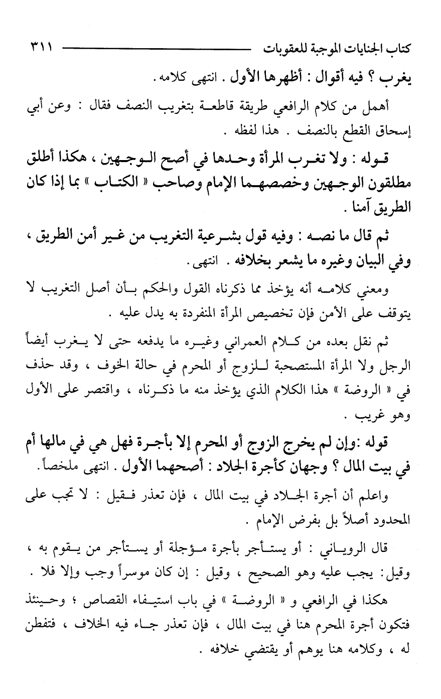 ثم قال ما نصه: وفيه قول بشرعية التغريب من غير أمن الطريق، وفي البيان وغيره ما يشعر بخلافه. انتهى.