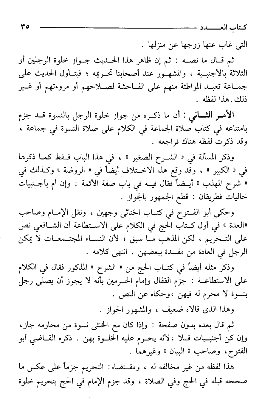 الأمر الثاني: أن ما ذكره من جواز خلوة الرجل بالنسوة قد جزم بامتناعه في كتاب صلاة الجماعة في الكلام على صلاة النسوة في جماعة، وقد ذكرت لفظه هناك فراجعه.