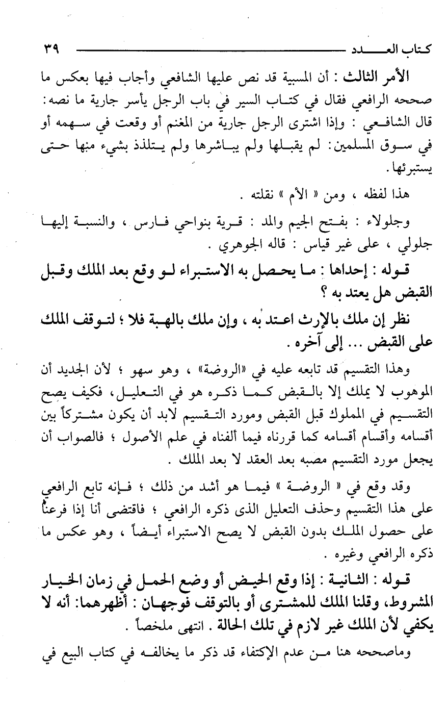 الأمر الثالث: أن المسبية قد نص عليها الشافعي وأجاب فيها بعكس ما صححه الرافعي فقال في كتاب السير في باب الرجل يأسر جارية ما نصه: قال الشافعي: وإذا اشترى الرجل جارية من المغنم أو وقعت في سهمه أو في سوق المسلمين: لم يقبلها ولم يباشرها ولم يتلذذ بشيء منها حتى يستبرئها.