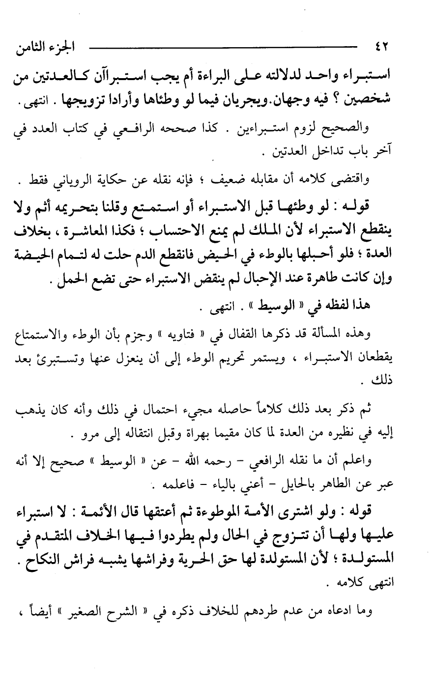 قوله: لو وطئها قبل الاستبراء أو استمتع وقلنا بتحريمه أثم ولا ينقطع الاستبراء لأن الملك لم يمنع الاحتساب؛ فكذا المعاشرة، بخلاف العدة؛ فلو أحبلها بالوطء في الحيض فانقطع الدم حلت له لتمام الحيضة وإن كانت طاهرة عند الإحبال لم ينقض الاستبراء حتى تضع الحمل.