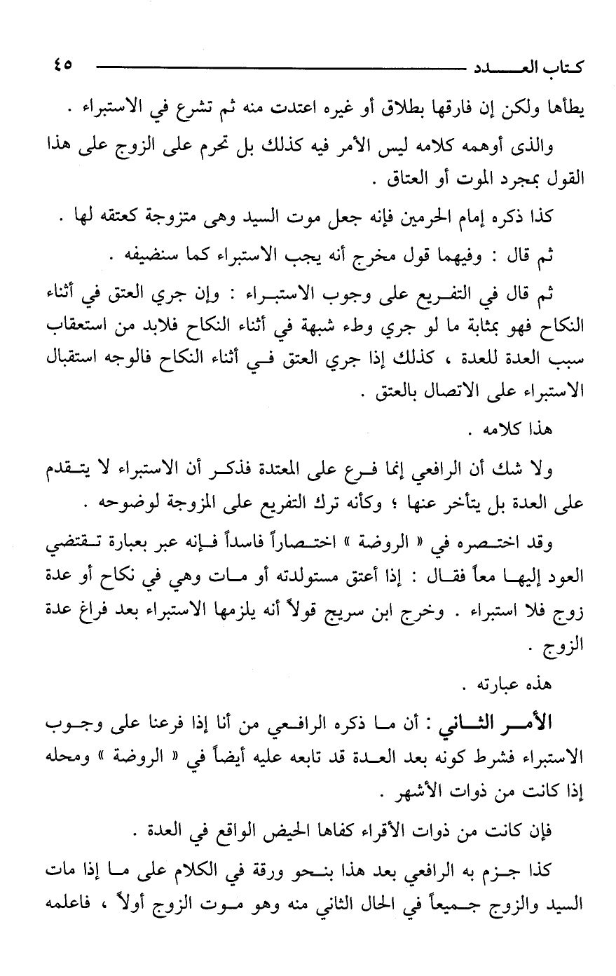 الأمر الثاني: أن ما ذكره الرافعي من أنا إذا فرعنا على وجوب الاستبراء فشرط كونه بعد العدة قد تابعه عليه أيضًا في "الروضة" ومحله إذا كانت من ذوات الأشهر.
