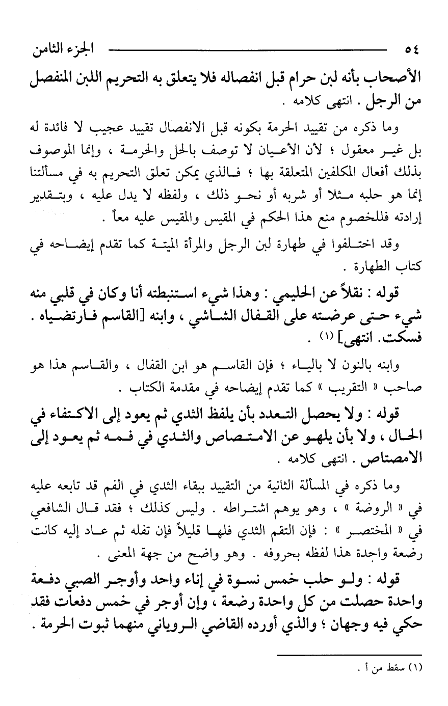 الأصحاب بأنه لبن حرام قبل انفصاله فلا يتعلق به التحريم اللبن المنفصل من الرجل. انتهى كلامه.