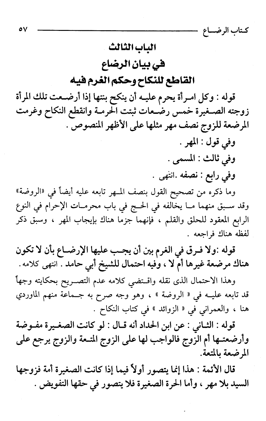 الباب الثالث: في بيان الرضاع القاطع للنكاح وحكم الغرم فيه
