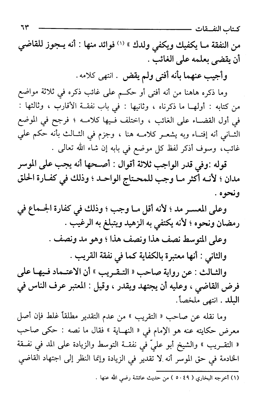 وما نقله عن صاحب "التقريب" من عدم التقدير مطلقًا غلط فإن أصل معرض حكايته عنه هو الإمام في "النهاية" فقال ما نصه: حكى صاحب "التقريب" والشيخ أبو عليّ في نفقة التوسط والزيادة على المد في نفقة الخادمة في حق الموسر أنه لا تقدير في الزيادة وإنما النظر إلى اجتهاد القاضي