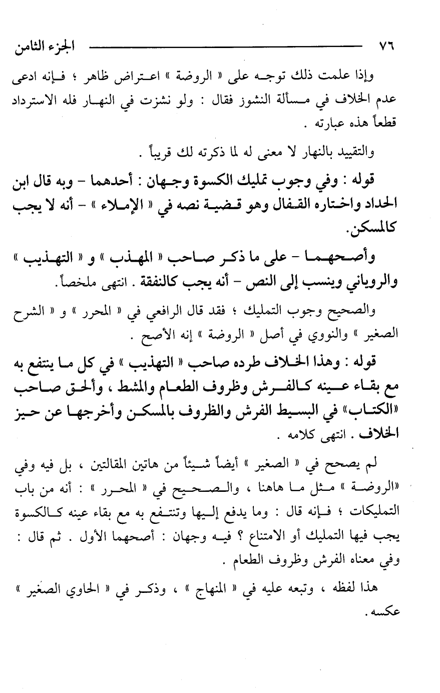 وإذا علمت ذلك توجه على "الروضة" اعتراض ظاهر؛ فإنه ادعى عدم الخلاف في مسألة النشوز فقال: ولو نشزت في النهار فله الاسترداد قطعًا هذه عبارته.