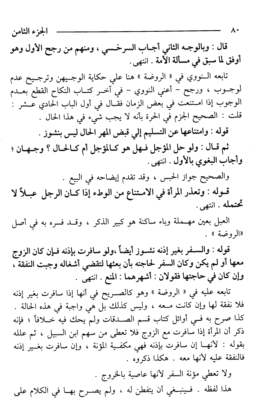 تابعه عليه في "الروضة" وهو كالصريح في أنها إذا سافرت بغير إذنه فلا نفقة لها وإن كانت معه، وليس كذلك بل هي واجبة في هذه الحالة. كذا صرح به في أوائل كتاب قسم الصدقات ولم يحك فيه خلافًا؛ فإنه ذكر أن المرأة إذا سافرت مع الزوج فلا تعطى من سهم ابن السبيل، ثم علله بقوله: لأنها إن سافرت بإذنه فهي مكفية المؤنة، وإن سافرت بغير إذنه فالنفقة عليه لأنها معه. هكذا ذكروه.