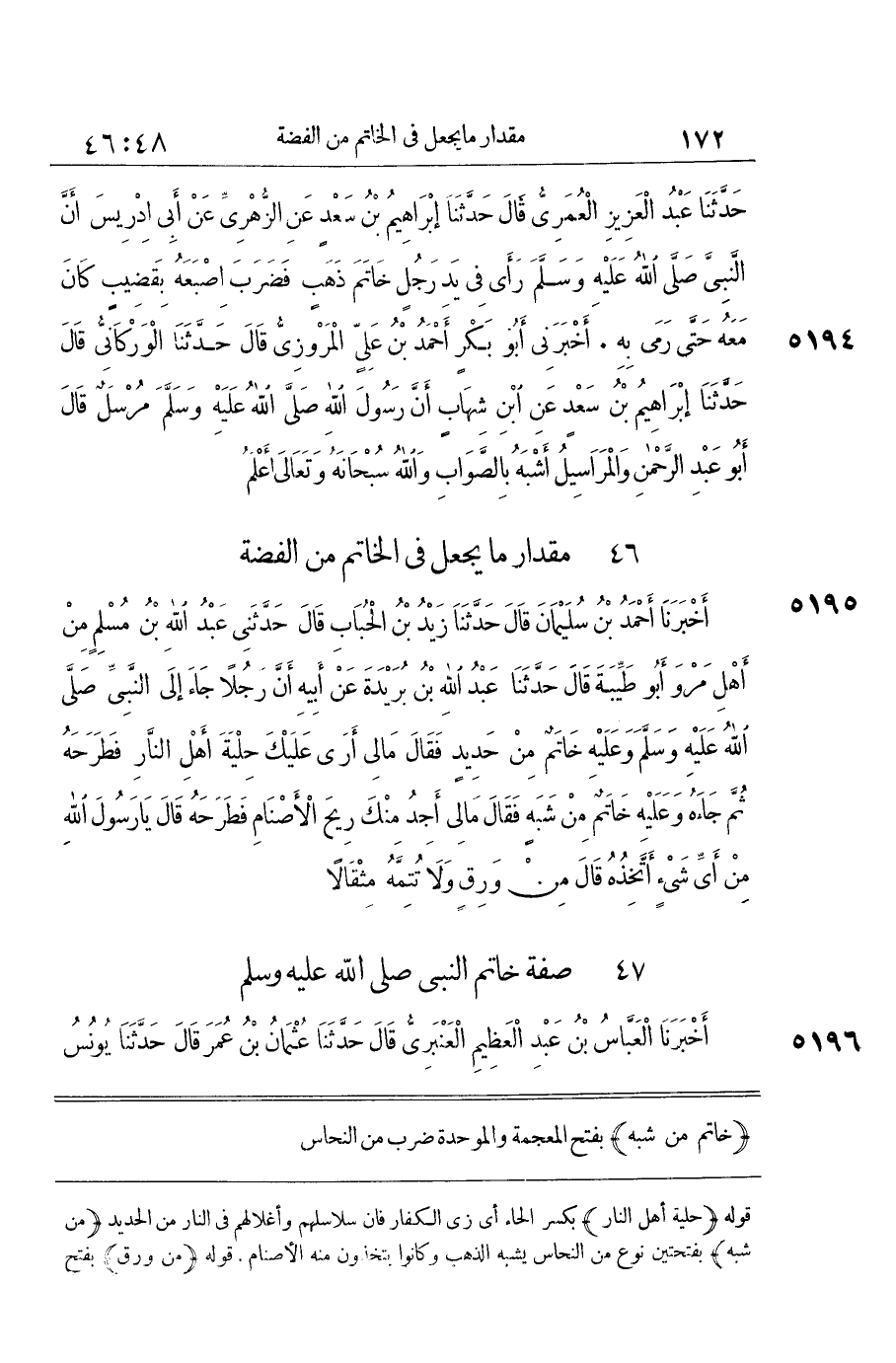 [5195] خَاتَمٌ مِنْ شَبَهٍ بِفَتْحِ الْمُعْجَمَةِ وَالْمُوَحَّدَةِ ضَرْبٌ من النّحاس