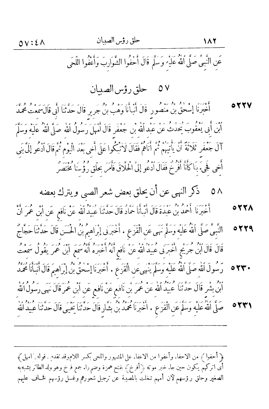 أحفوا من الإحفاء وأعفوا من الاعفاء على الْمَشْهُور واللحى بِكَسْر اللَّام وَقد تقدم قَوْله أمْهل أَي اتركهم يكون حِين جَاءَ خبر مَوته أفرخ بِفَتْح همزَة وَضم رَاء جمع فرخ وَهُوَ ولد الطَّائِر يشبه بِهِ الصَّغِير وَحلق رؤوسهم لِأَن أمّهم شغلت بالمصيبة عَن ترجيل شُعُورهمْ وَغسل رؤوسهم فخاف عَلَيْهِم
