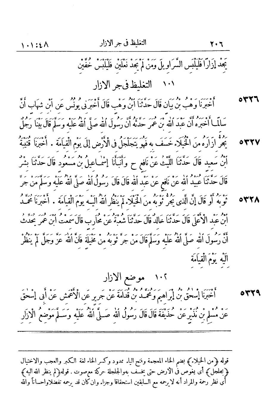 [5326] من الْخُيَلَاء بِضَم الْخَاء الْمُعْجَمَة وَفتح الْيَاء مَمْدُود وَكسر الْخَاء لُغَة الْكبر وَالْعجب والاختيال يتجلجل أَي يغوص فِي الأَرْض حَتَّى يخسف بِهِ والجلجلة حَرَكَة مَعَ صَوت