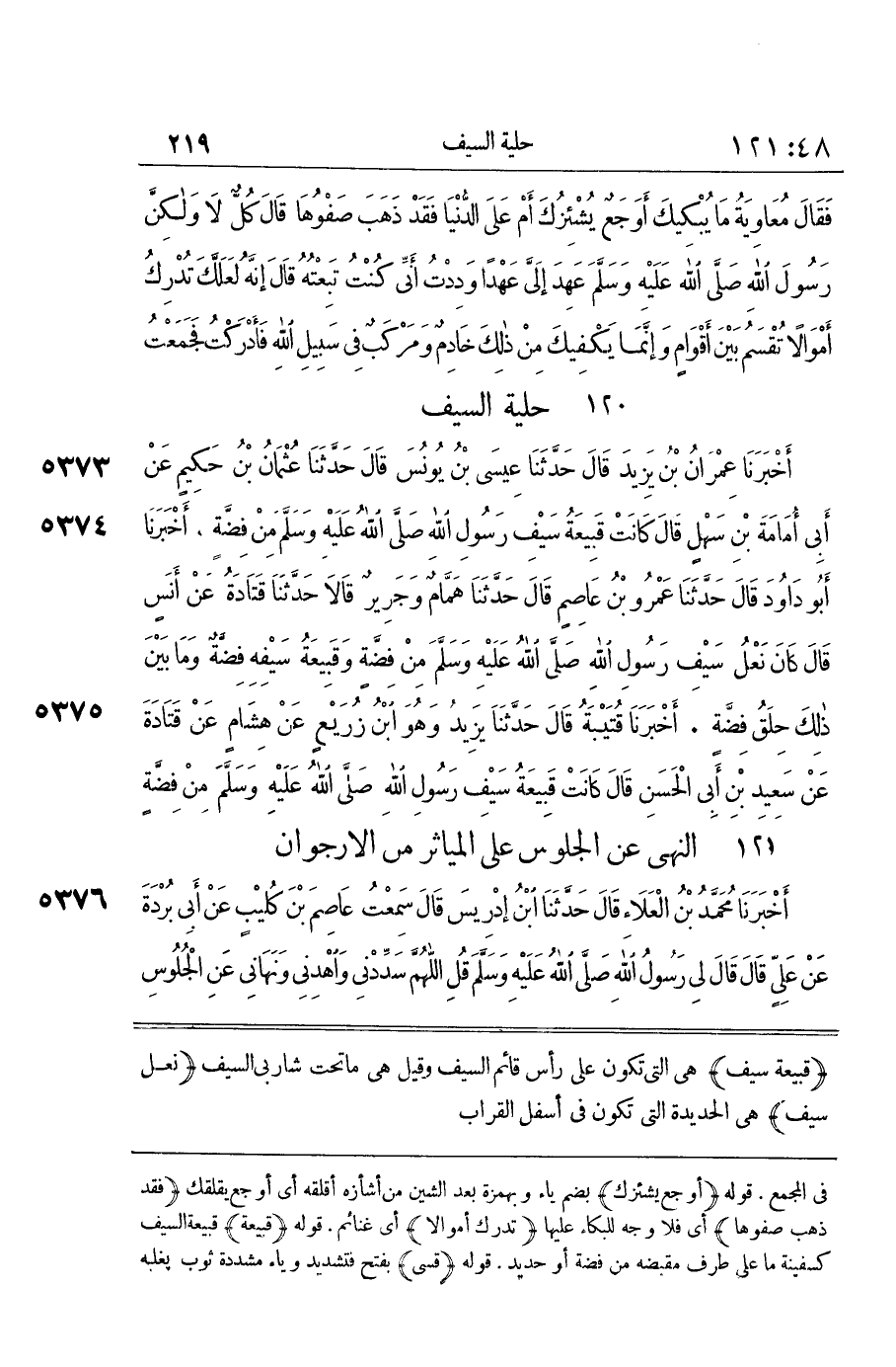 [5373] قَبِيعَةُ سَيْفِ هِيَ الَّتِي تَكُونُ عَلَى رَأْسِ قَائِمِ السَّيْفِ وَقِيلَ هِيَ مَا تَحْتَ شَارِبَيِ السَّيْفِ