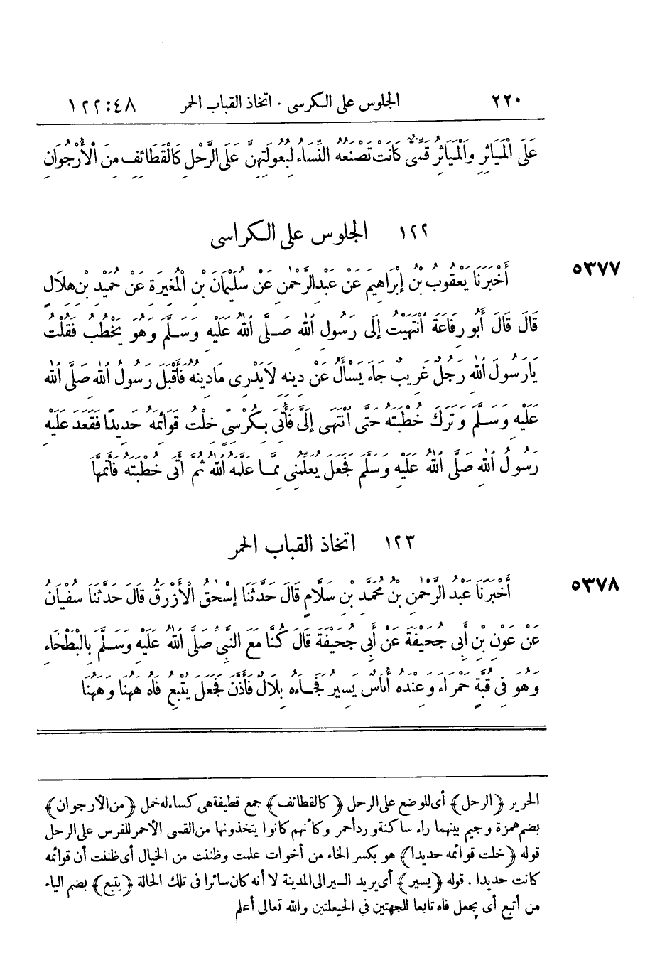 [5377] خلت قوائمه حديدا هُوَ بِكَسْر الْخَاء من أَخَوَات علمت وظننت من الخيال أَي ظَنَنْت أَن قوائمه كَانَت حديداقوله يسير أَي يُرِيد السّير إِلَى الْمَدِينَة لَا أَنه كَانَ سائرا فِي تِلْكَ الْحَالة يتبع بِضَم الْيَاء من اتبع أَي يَجْعَل فَاه تَابعا للجهتين فِي الحيعلتين وَالله تَعَالَى أعلم