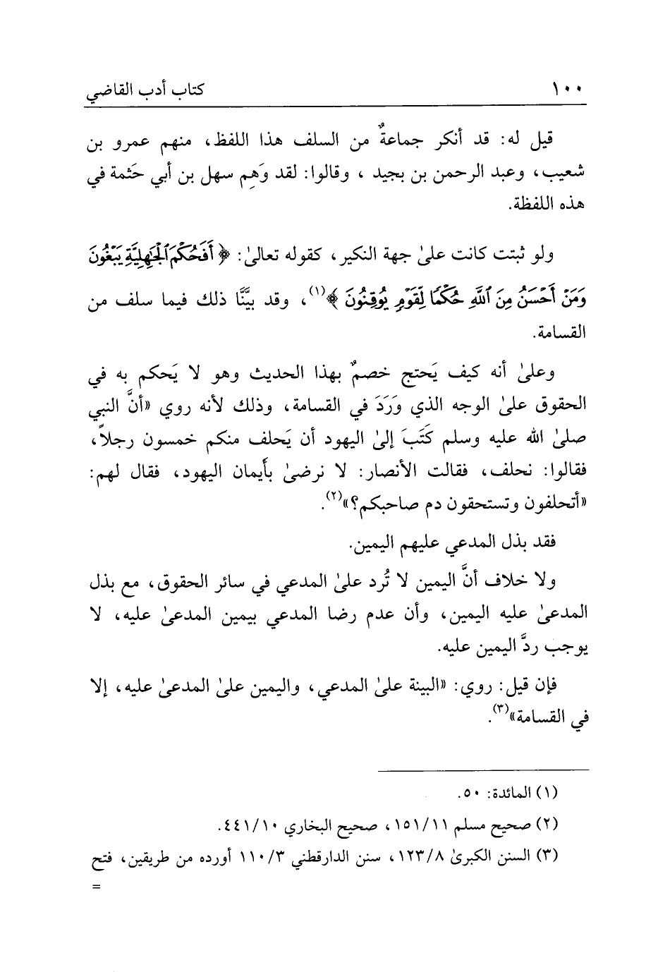 ولو ثبتت كانت على جهة النكير، كقوله تعالى: {أفحكم الجاهلية يبغون ومن أحسن من الله حكمًا لقوم يوقنون}، وقد يبنا ذلك فيما سلف من القسامة.